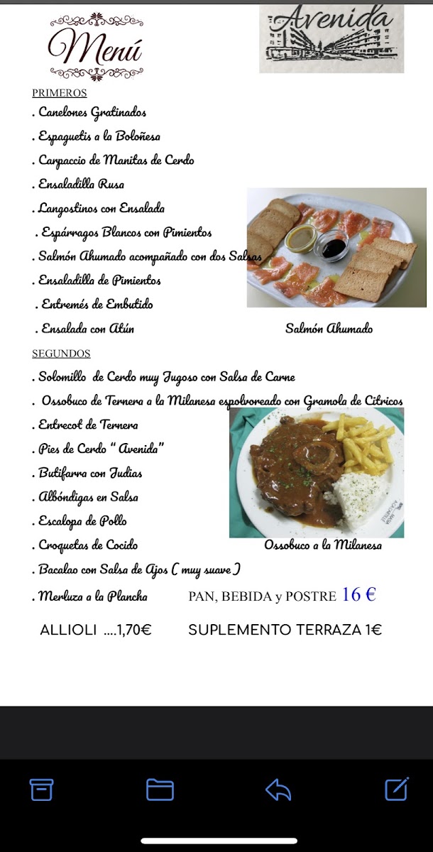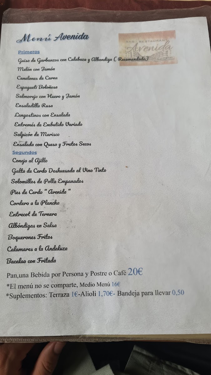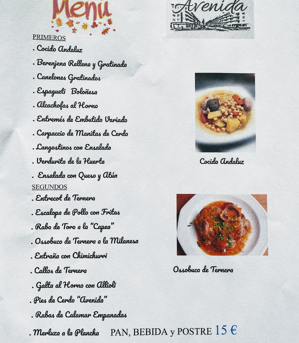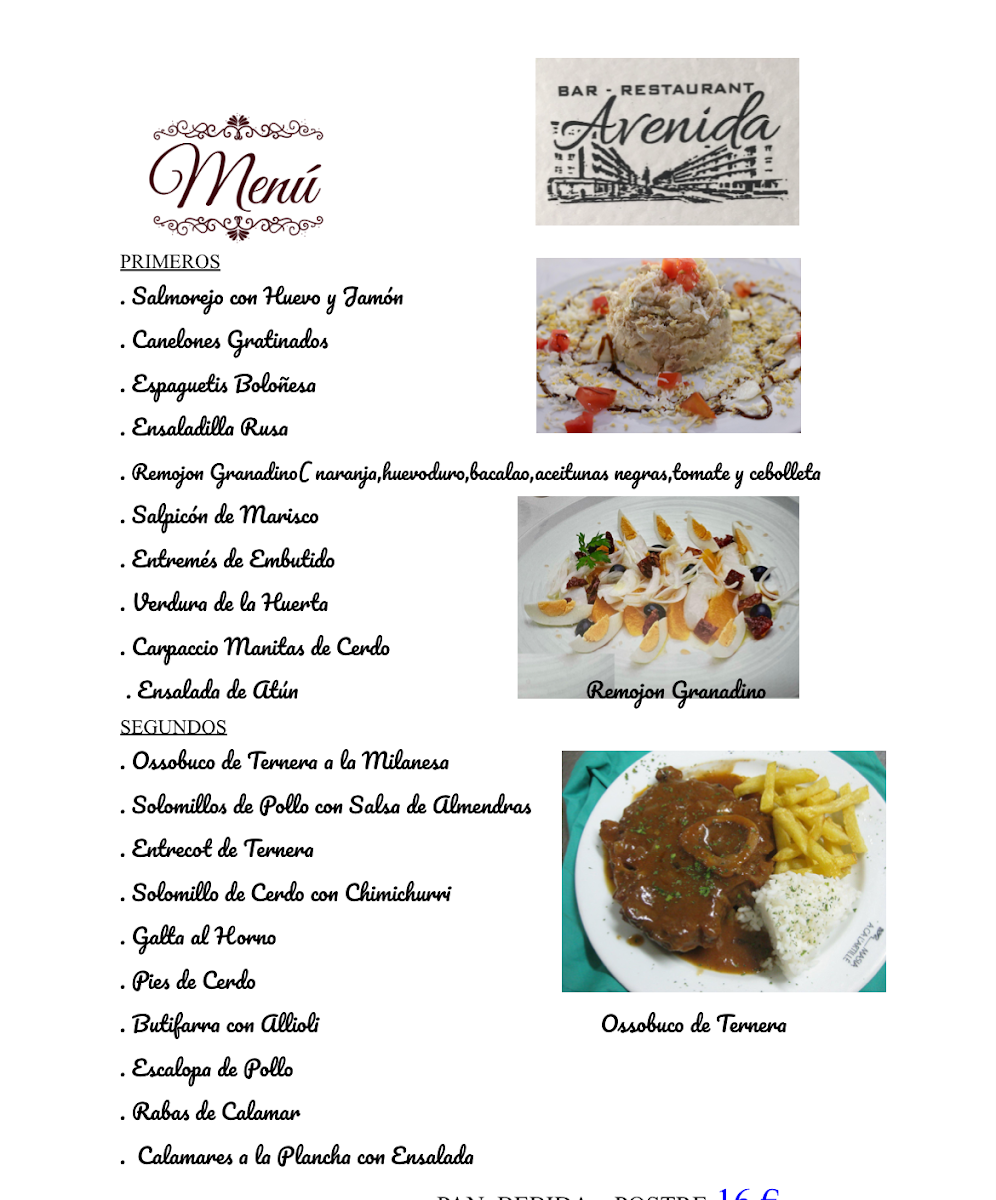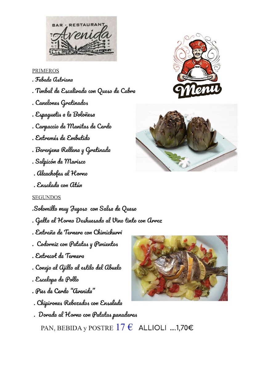 Restaurant Avenida Menu